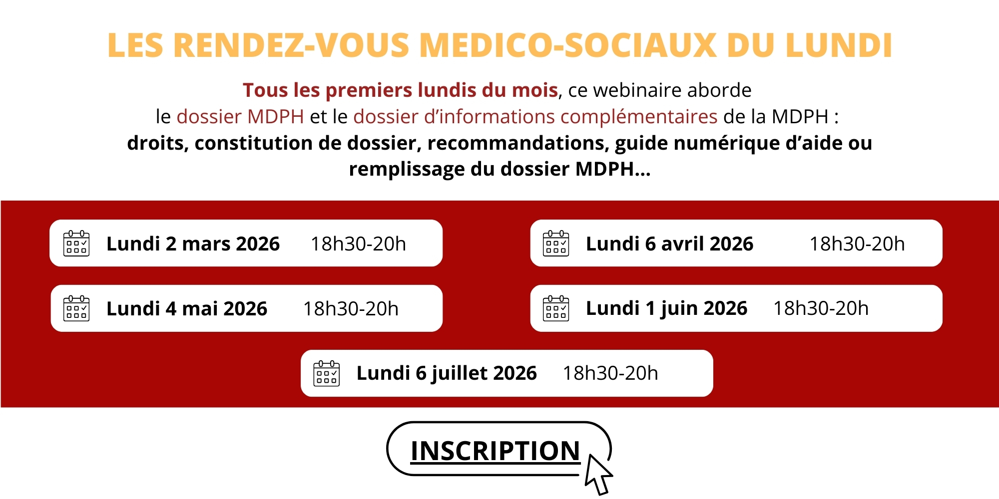 Des webinaires tous les premiers lundi du mois, de 18h30 à 20h pour répondre aux besoins des personnes qui se questionnent sur le dossier MDPH